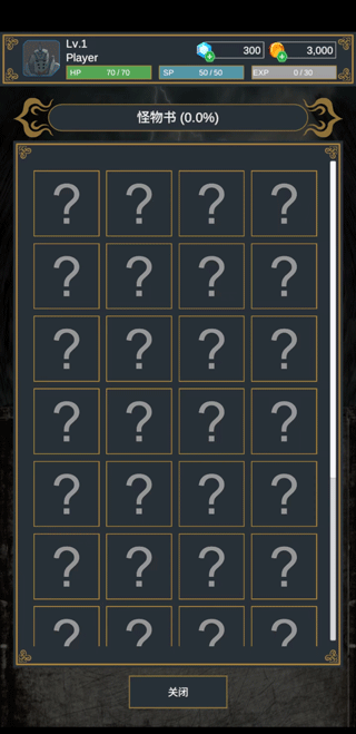 8、点击怪物书,可以查看所有遇到的怪物整体参数;