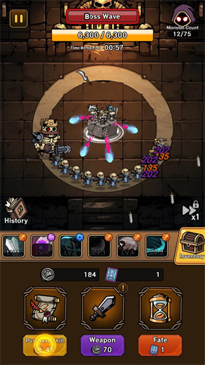 5、点击武器图标按钮可以消耗银币来购买不同的武器,这些武器可以提升你的技能威力。
