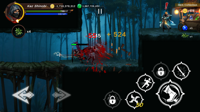 1、在动作游戏 - 暗影格斗中,忍者 - 忍者击败敌人并战斗到最终boss