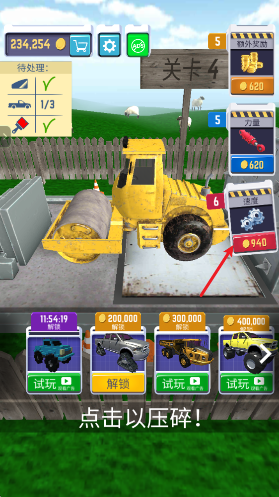 3、 选择合适的车辆:在游戏开始前,根据目标选择合适的车辆进行粉碎,不同车辆有不同的粉碎难度和奖励。
