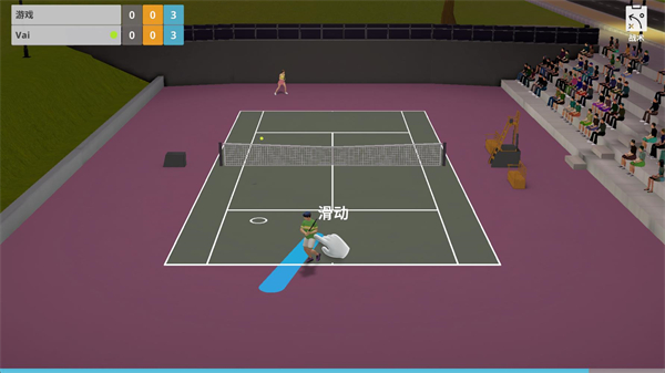 3、正式开始比赛后玩家可以点击屏幕控制角色移动,滑动屏幕来指挥角色发球或者击球,也可以什么都不管让角色自动进行比赛。