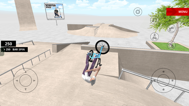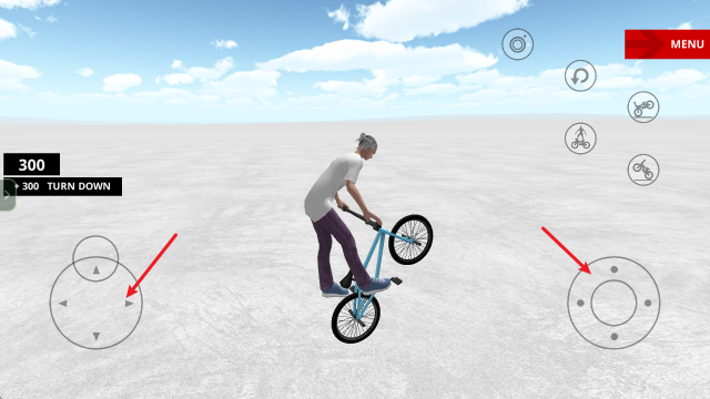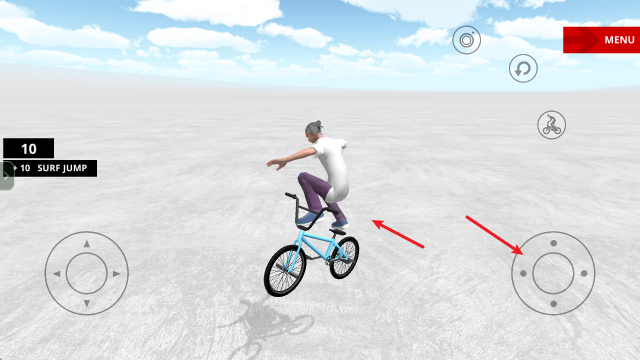1、开始游戏后,左侧的摇杆控制自行车移动,右侧摇杆实现各种动作,例如左右拉动摇杆则是旋转。