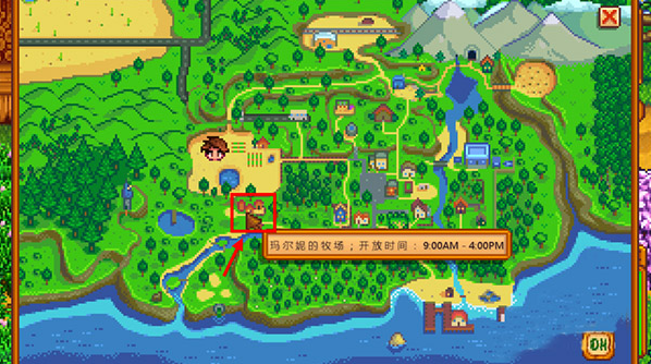 3、那么接下来就要在地图上找到在玛尔妮农场了。位置:自家农场右下侧一点点。
