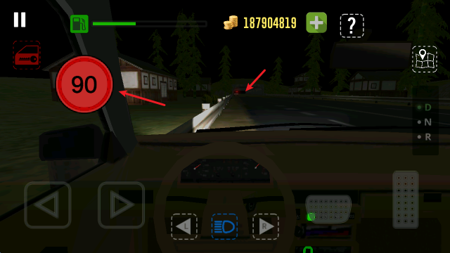 1、游戏中左侧的方向键控制转向,右侧长踏板为油门加速,短踏板则是刹车。