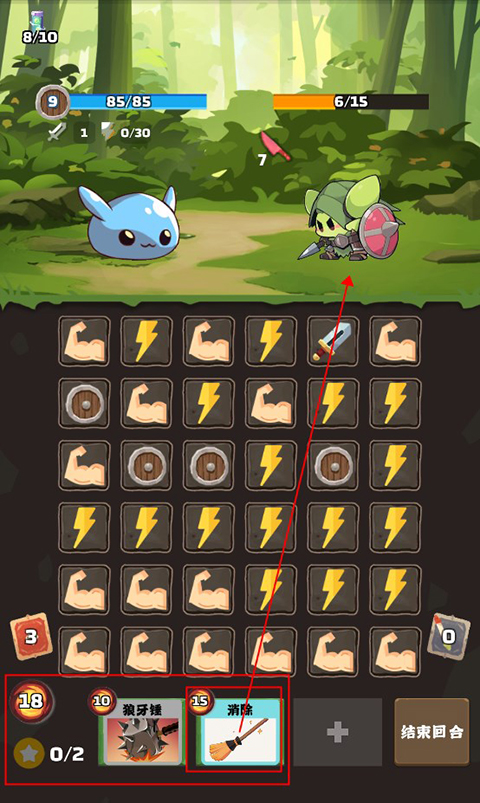 3、创新消除战斗机制:连接消除不仅能直接攻击敌人,还可获取能量、触发卡牌效果,消除数量与组合方式直接影响战力,玩法新颖且充满变数。