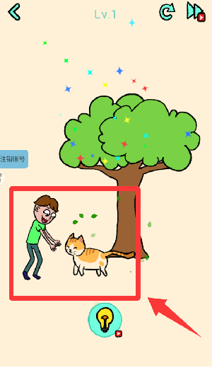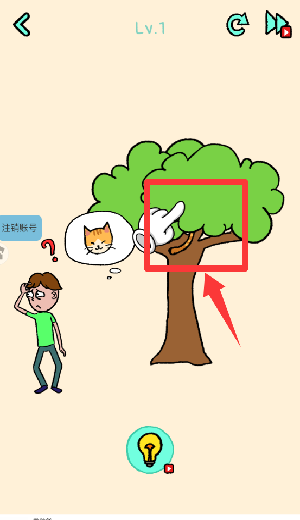 2、进入游戏它在找猫,点击树上的猫尾。