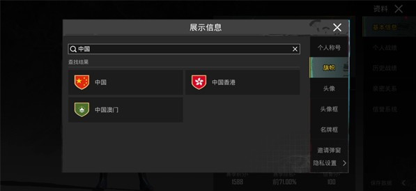 3、在展示信息一栏,点击要更改的国籍,或者直接在搜索框输入国家名字搜索;