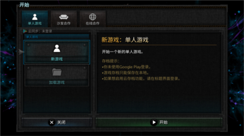 2、烛火地牢2游戏总共设置了三种模式,分别为单人游戏,沙发合作以及在线合作,同时还支持使用谷歌账号进行云存档功能。