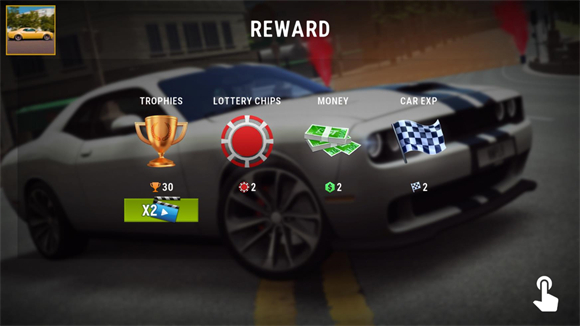 5、驾驶你的车辆第一个抵达终点就可以取得胜利,取得胜利后会获得各种奖励。