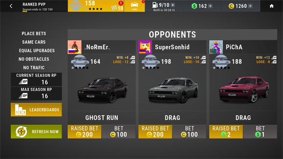7、点击右下方的PVP按钮可以让你和其他玩家进行较量,你可以选择不同的对手和模式来游玩。