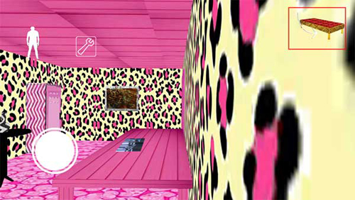 1、打开游戏,你会发现在一个充满粉色的房间里醒来,靠近床的地方会有右上角的按钮,点击它。就能躲到床底下。