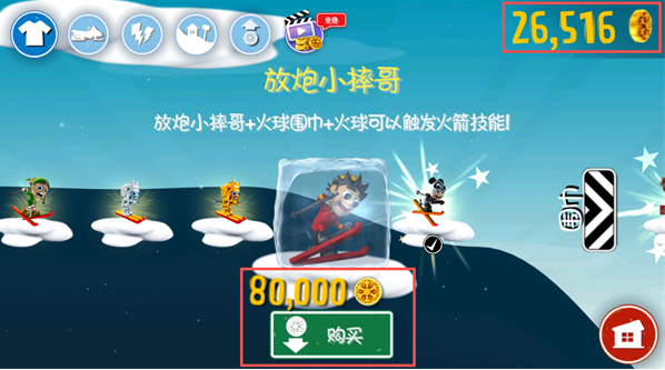 3、拥有多种可爱的角色可供选择,每个角色都有着独特的滑雪技能和特长。
