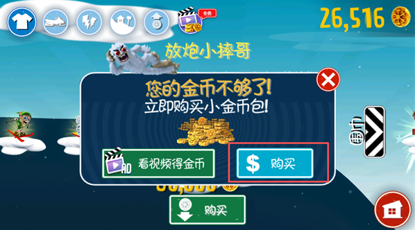 2、接下来,系统会弹出提示窗口,给你提供两种选择:看视频得金币、付费购买金币包。