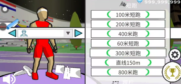 根据自己操控的熟练度,选择不同身材的运动员参加比赛,比赛获胜就能换取金币奖励。