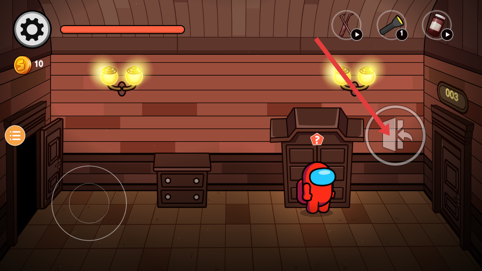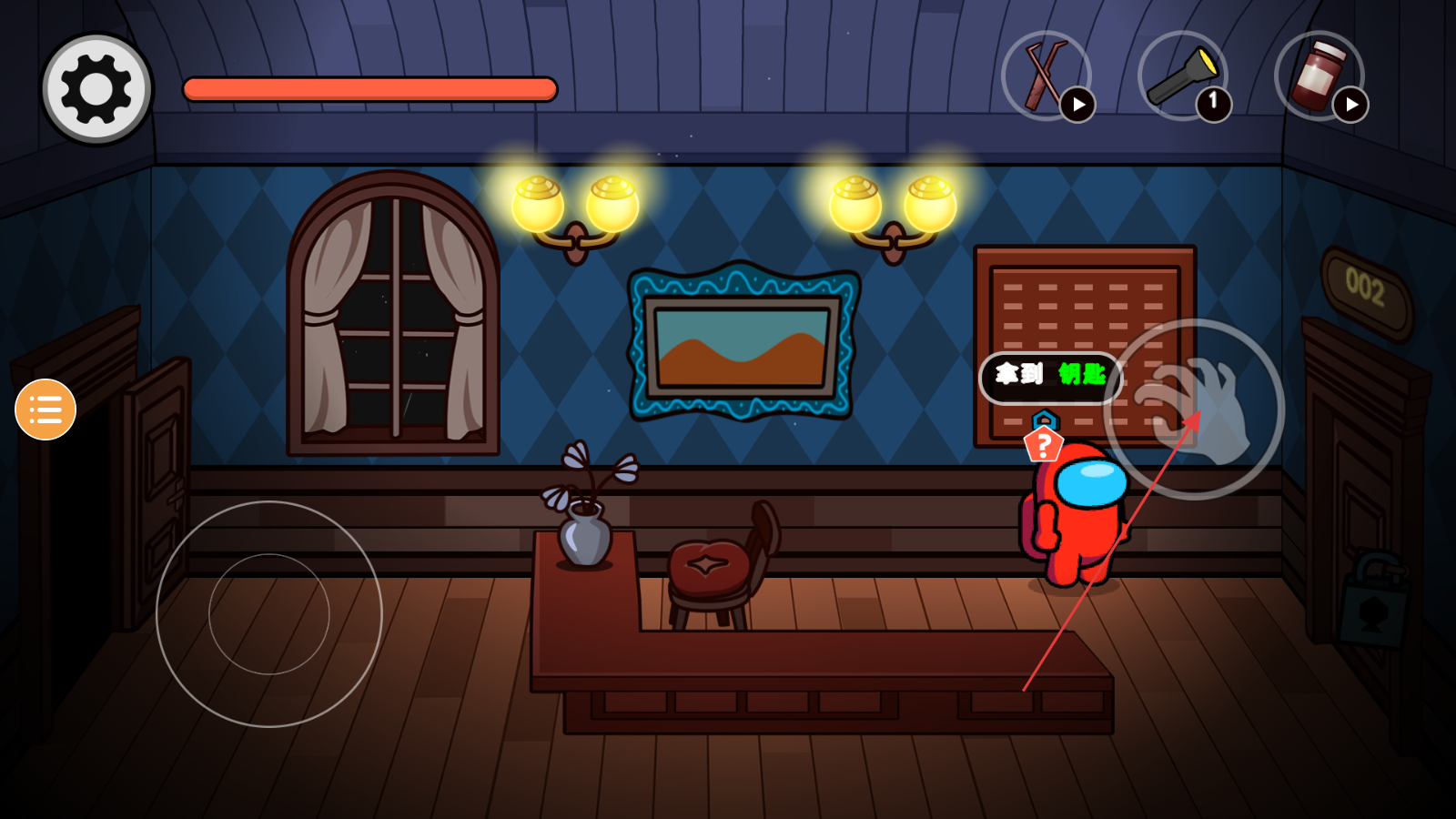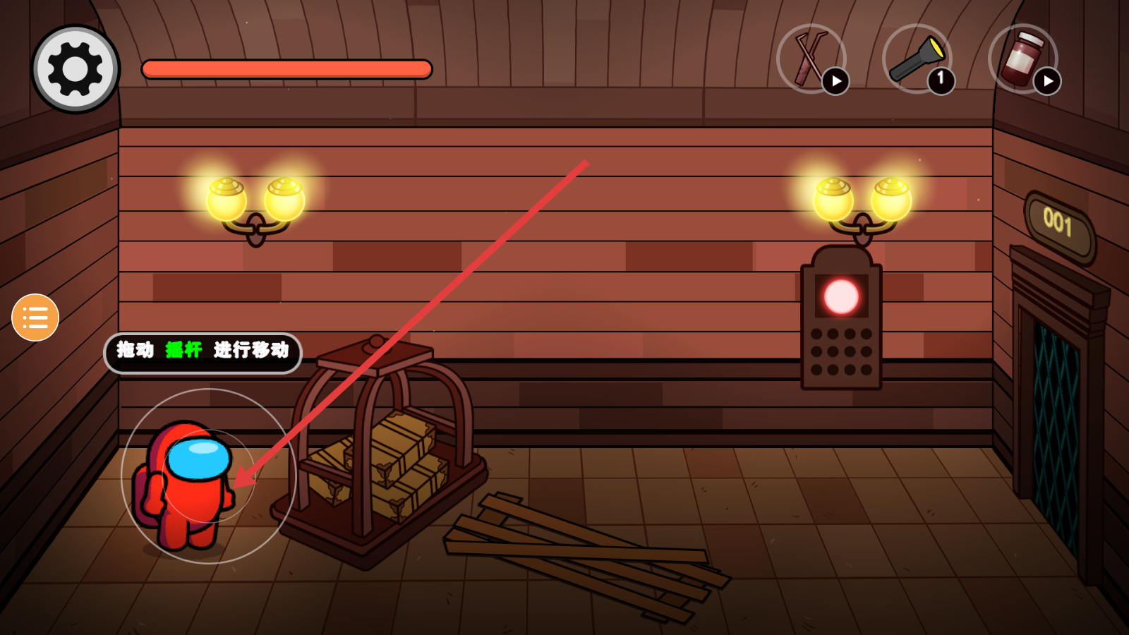 2、拖动角色摇杆移动,靠近货物架,探索房间获取线索。
