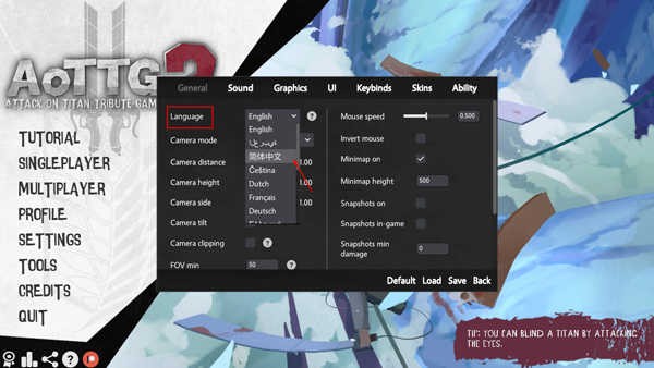 5、进入游戏如图,如选择人类阵营,玩家则需操纵角色攻击巨人;