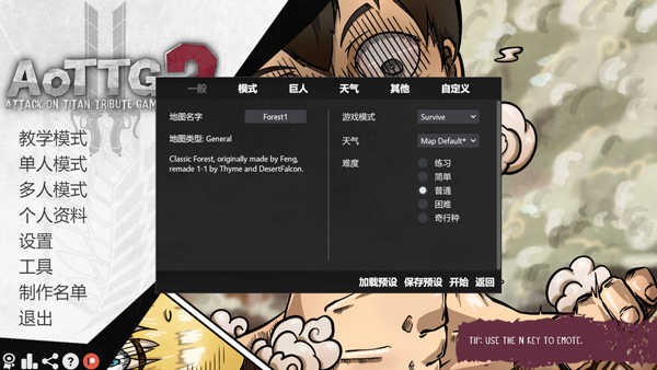 2、进入游戏后,点击单人模式,选择地图,以及模式、天气、难度等;