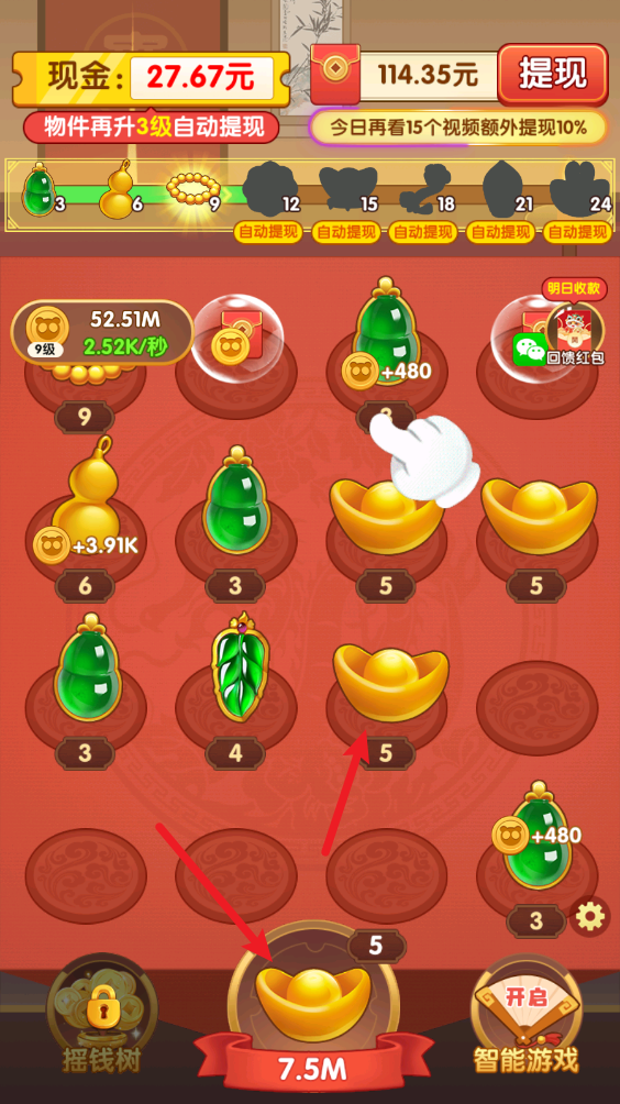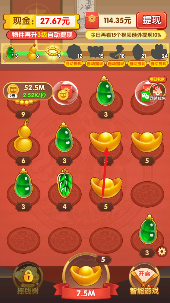 3、每次合成解锁出全新的物品就能够获得红包局奖励了。