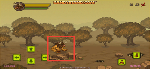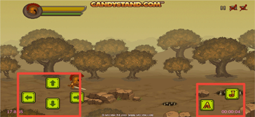 2、进入游戏后,左边上下左右按钮操控角色的移动,右边A为攻击,J为跳跃