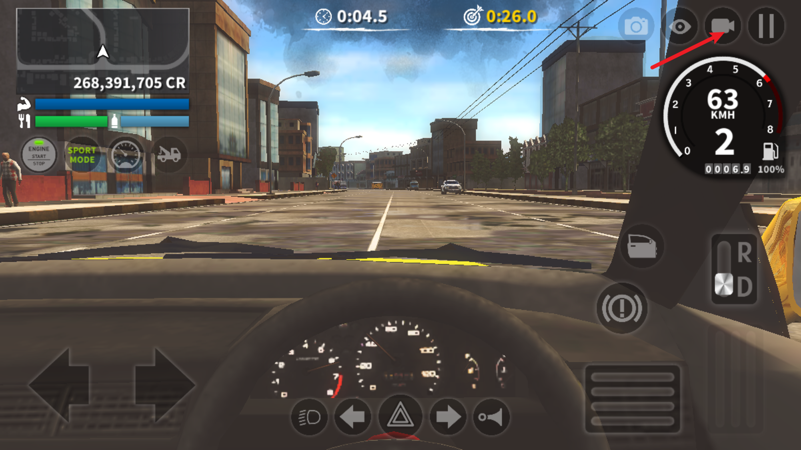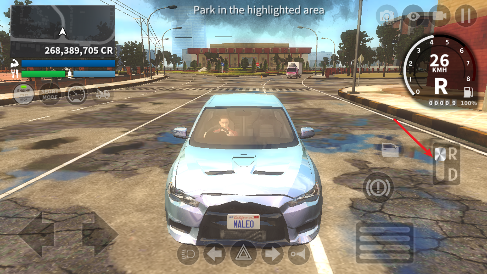 4、点击右侧还能够进行换挡,切换到倒车模式。