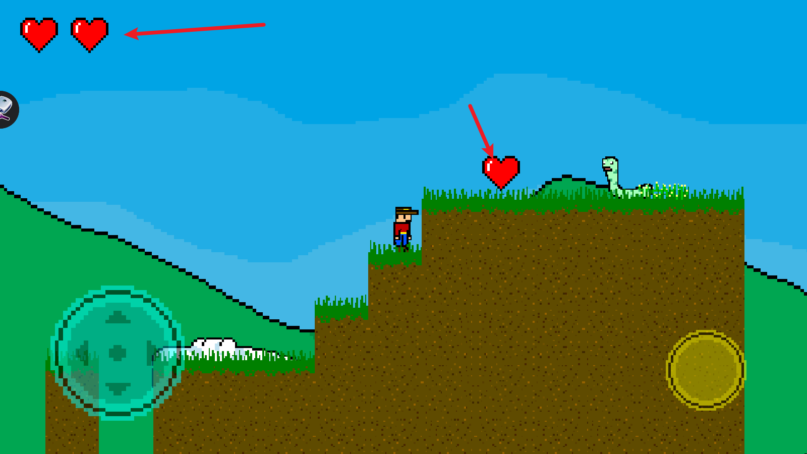 4、地图上还会有各种道具,例如爱心就能增加你一条命。