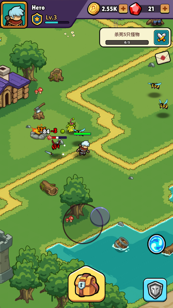 1、拖动屏幕即可控制英雄移动,靠近敌人后即可进行战斗。