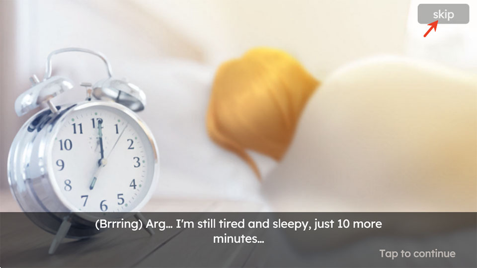1、甜蜜家园游戏语言为英文,但不影响游玩,这里我们点击右上角的跳过。