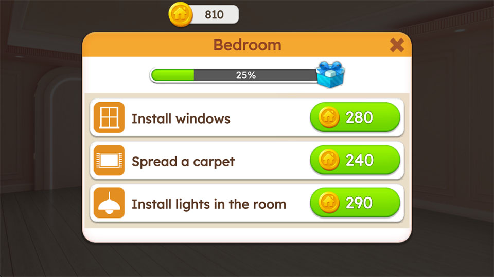 甜蜜家园游戏(Sweet Home)是一款令人上瘾的方块游戏。游戏中巧妙的将消除玩法和现实模拟建造融合在一起,为玩家提供了一场前所未有的游戏内容。玩家可以在甜蜜家园中玩消除匹配游戏来赚取货币,并且玩家匹配用的步数越少获得的奖励也越丰富,而这些货币可以用来建设华丽的建筑,让玩家可以根据自己的想法来自由装饰房屋。