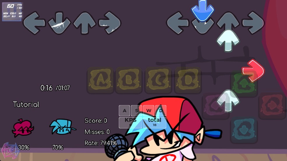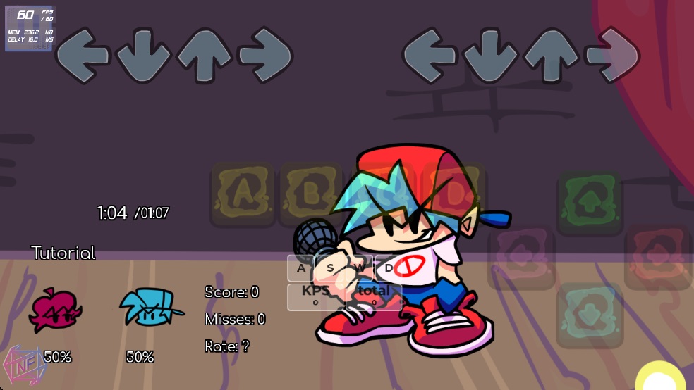 2、 延续FNF经典的下落式箭头玩法,操作简单易上手,跟着节奏按键就能获得强烈的演奏快感。