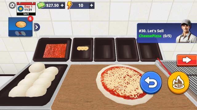 3、 游戏提供多种面团和配料选择,玩家可以根据顾客需求自由搭配,制作出各种口味的披萨。