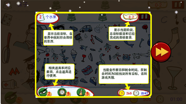 找对物品:会增加剩余游戏时间,并获得分数 / 金币奖励。