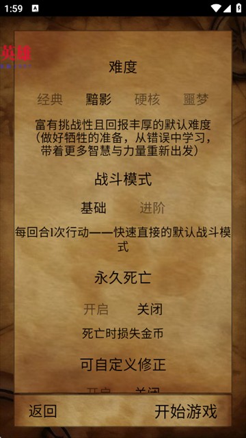4、根据情况选择游戏难度、战斗模式等等,选择完成后,点击“开始游戏”;
