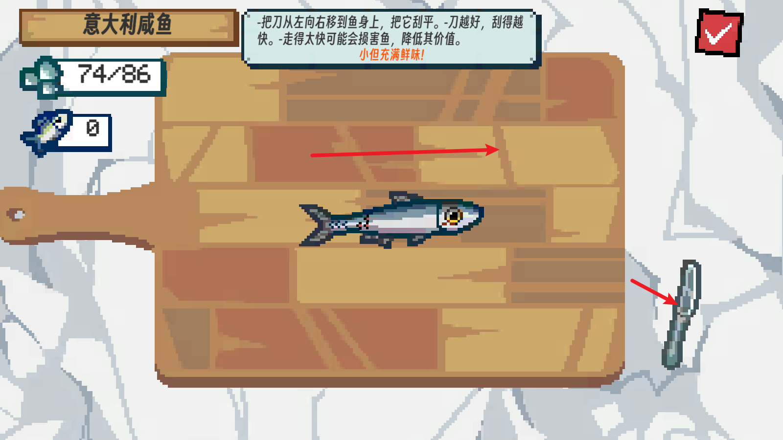 3、不要小看刮鳞这个技术活,需要小心慢慢的去操作,这样才能得到完美的小鱼,换取更多的奖励!