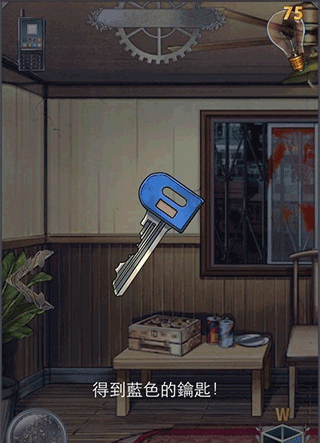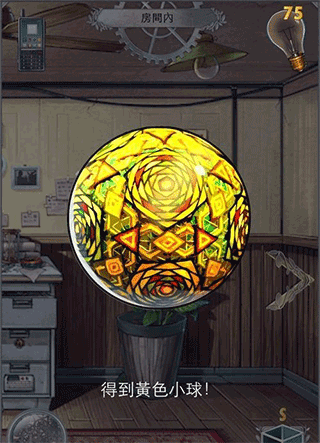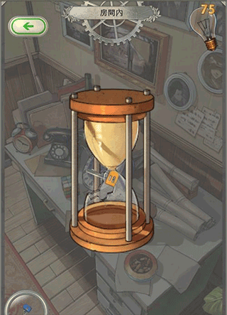 6、在S区的桌上有一个沙漏,点击沙漏后将手机倒过来,出现黄色钥匙,打碎沙漏后得到黄色钥匙: