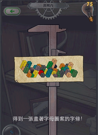 5、来到S区域,点击盆栽,获得7-5的数字,然后来到E区,进入到柜子的左边,点击尺子,调到7-5的尺寸,得到字母图案的字条,上面显示的是SAEK,来到S区,点击桌子最下方的密码抽屉,输入SAEK(大写),得到时钟的分针: