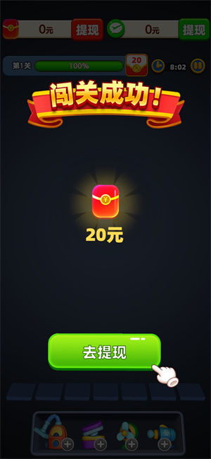 4、通关就可以获得红包,游戏中的提现有两种,分别是红包和微信现金。