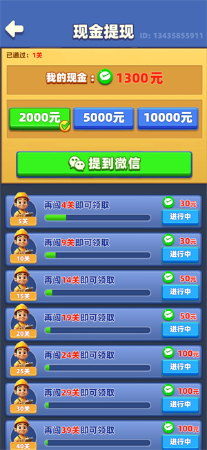 6、微信现金只能通过指定的关卡来获得奖励,积累一定金额就可以提现。