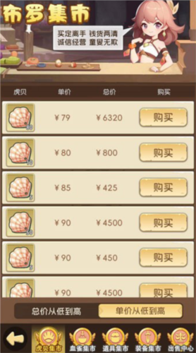 面对强大的怪物时,我们必须武装自己。除了游戏中产出装备外,也可以通过集市购买其他玩家商品。