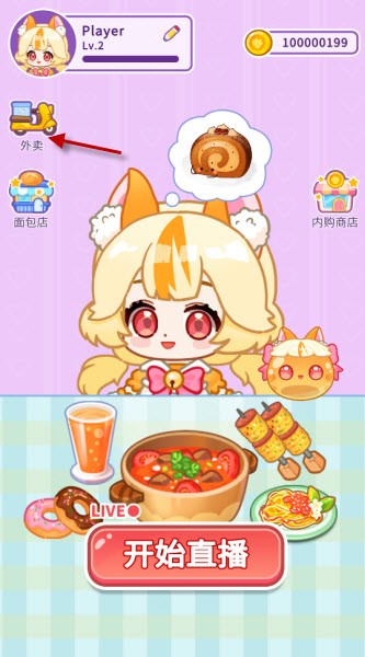 1、点击游戏主界面左上角的外卖图标,进入外卖界面。