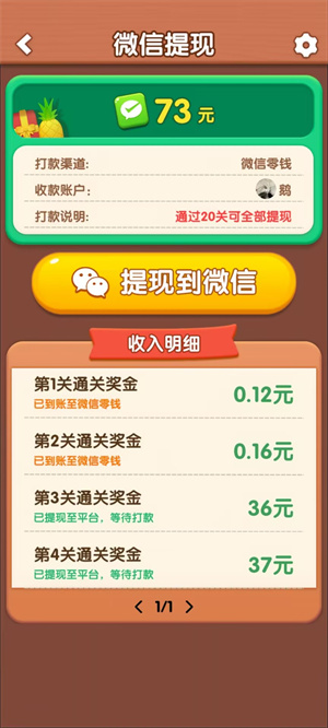 2、游戏里,你每过一关,红包的奖励比例就会提高,越玩领的红包越大。