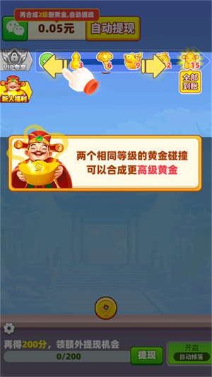 2、合成需要玩家合成不同等级的黄金,只要两个相同等级的黄金碰撞就可以合成更高等级,合出高等级黄金就能获得红包。