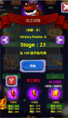 龙之试炼增加的龙之源石,规则同英雄狩猎类似,只是每次消耗的是宝石。宝石在3-20级之间随机出现。无时间限制。