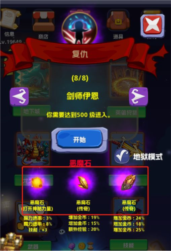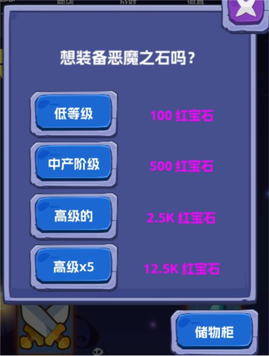 复仇则是需要花费宝石购买足够多的恶魔石,而购买的恶魔石则可以由低级向高级合成,更重要的是,不同类别的恶魔石组合安装则可以有不同的效果。无时间限制