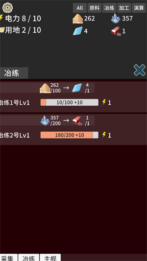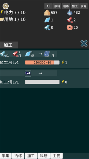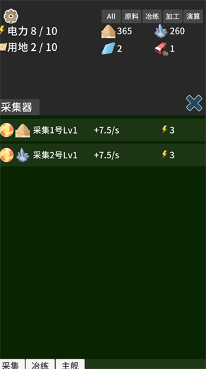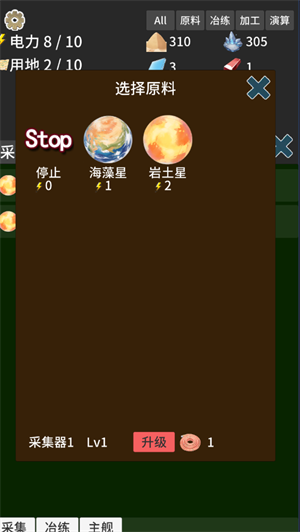 2、两个星球的开采原料的效率不同,同星球的同种原料只能由一个采集器开采,应该根据目前需求选择合适的开采项目