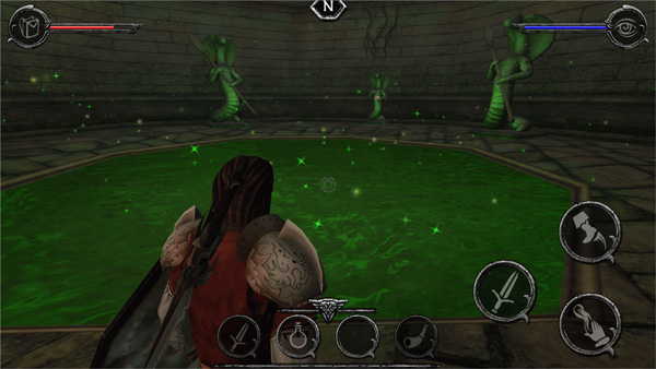 8、进入通路最末,打开门,一个大的游泳池,对面就是掠夺之剑碎片 2 ravenstone 2,BOSS是一条类似龙头的蛇,从池子里出来,就站在门口处那一截,上下走就可以了,它咬一口有个间隙停顿,你就上去砍一刀,重复一下就搞定,然后取得碎片2.返回 艾文城北 North Aven,大法师告诉你去取碎片3,在暗夜精灵王子手里,去荒蛮之地 wasterland寻找。