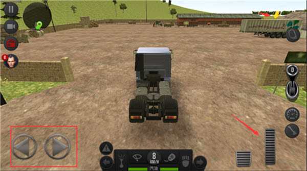 4、在场景内通过屏幕下方左右两侧的按钮控制车辆移动。