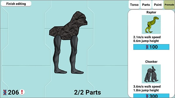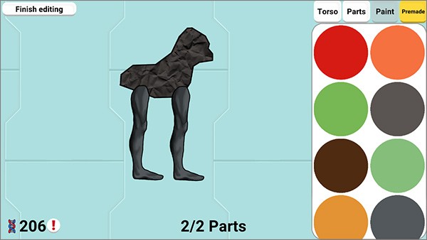 4、部件自由组合:提供庞大的生物部件库,包括躯干、四肢、颜色等选项,玩家可自由搭配设计个性化生物,打造专属进化路线。