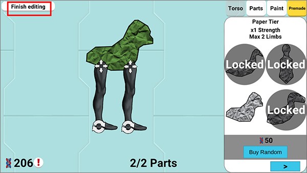 6、当玩家创建好生物后点击左上角的“Finish editing”返回观察页面;