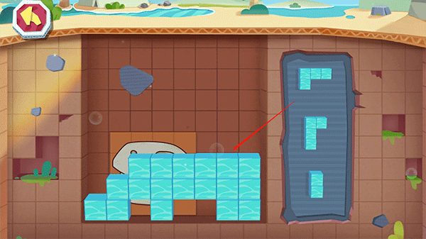 2、寻找到恐龙位置后将进入俄罗斯方块界面,而玩家需要将右边的方块填补到左边的空缺上