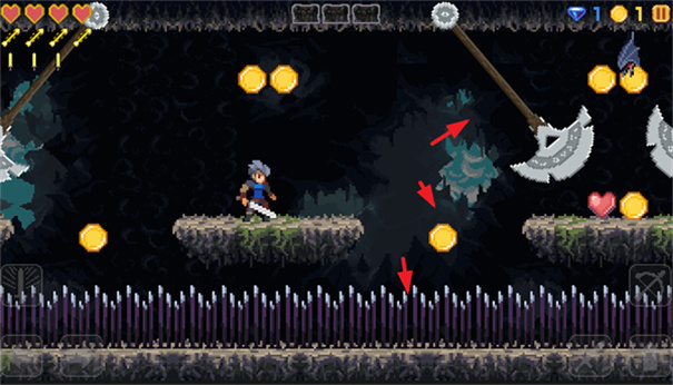 4、尽情的跳跃一番,避开怪物的攻击,同时一直往前移动,自然可以过关。